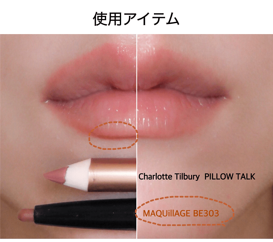 首先準備兩支色系相近、一深一淺的唇線筆,分上下唇來看,上唇側邊輪廓線用淺色唇筆修飾唇形,如果上唇側邊比較單薄的人可以用唇筆加厚一點點,讓唇形膨潤一些。