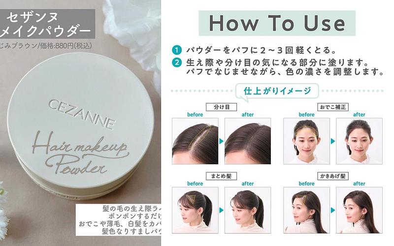 CEZANNE塞尚每次推出新品,都超令人期待!不只實用度滿分、彩妝品色澤絕美,可說是C/P值超高的開架彩妝~這次小編又來興奮的跟大家介紹,CEZANNE塞尚9月即將在日本上市的新品-CEZANNE塞尚 HAIR MAKE POWDER,主要可用來修飾髮際線、分線隱藏,遮飾白髮,可說解決了許多女孩們長久以來不知該如何解決的煩惱!
