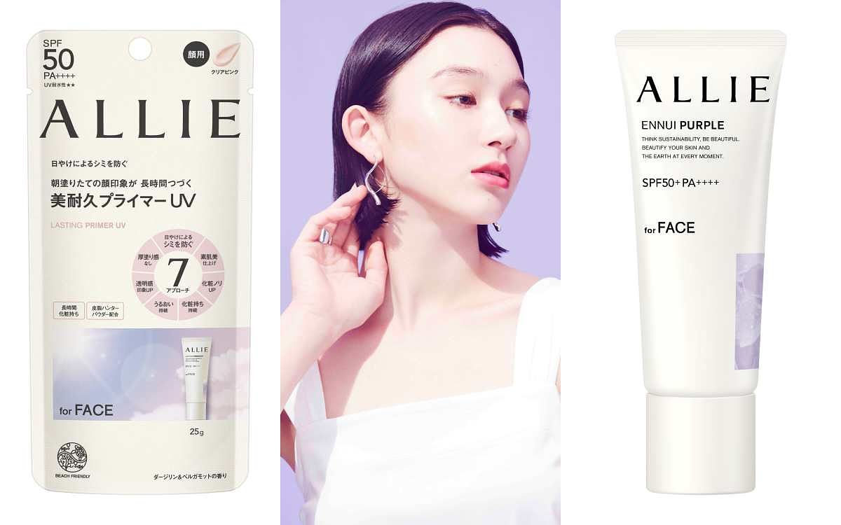 圖片來源:ALLIE 今年全新推出「ALLIE 持采長豔UV高效防曬飾底乳」,一瓶即可解決日間常見的七種肌膚困擾,結合防曬、8小時持妝力、抑制油光、提亮、補妝使用等7種強大功能,持續維持早晨剛完妝的肌膚狀態,是一款打造完美妝容必備、開架最強的臉部防曬。Kanebo 台灣鐘紡的ALLIE 防曬產品可在台灣鐘紡官方購物網(https://bit.ly/3IYaegl)或全台屈臣氏、康是美、寶雅、松本清、Tomod’s、Don Don Donki 唐吉訶德、日藥本舖、佳瑪、蝦皮直送、PChome24h購物等開架通路或網路平台購買。