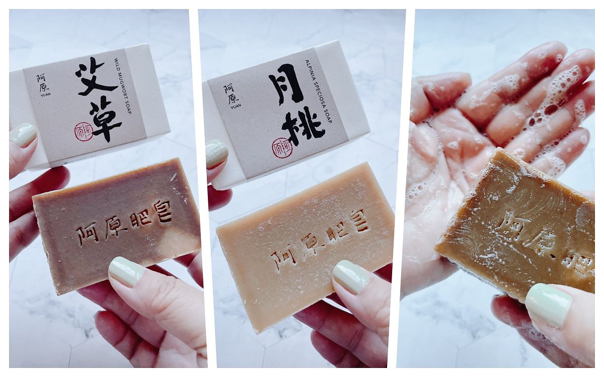 不管是艾草皂或月桃皂,添加的都是阿原位於陽明山國家公園內、自家農場栽種的原料,之前改為紙包裝還加厚,真心愛地球!艾草皂功效為淨化修護,是民俗月的熱賣品,月桃皂則能潤澤透亮肌膚,臉及身體都能用!