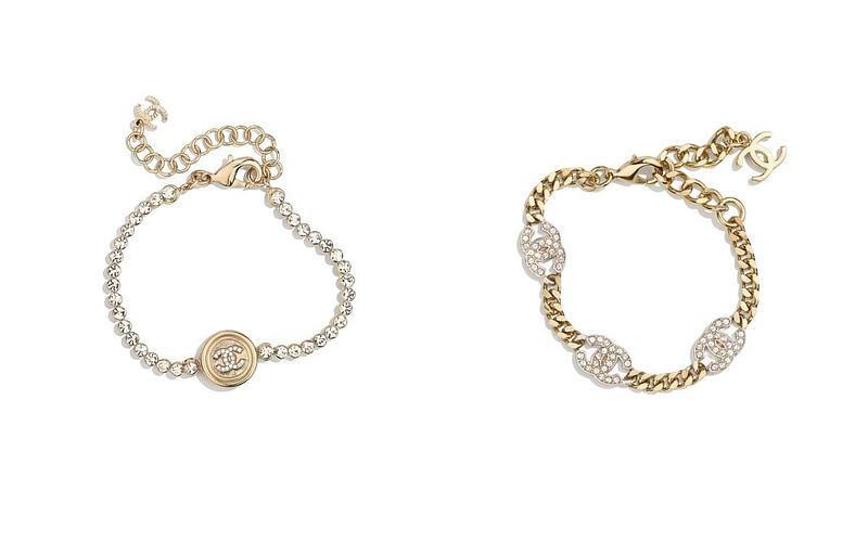 CHANEL 圓形金屬水晶手鍊NT.17,300(左)