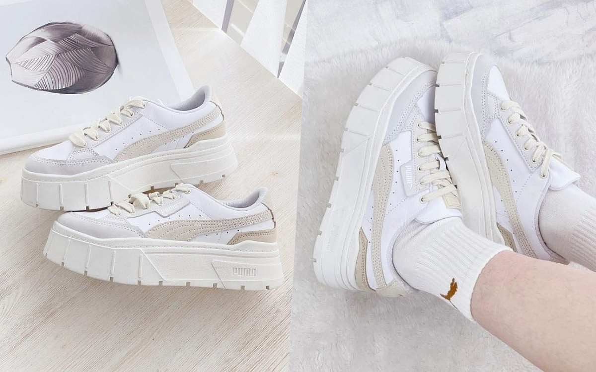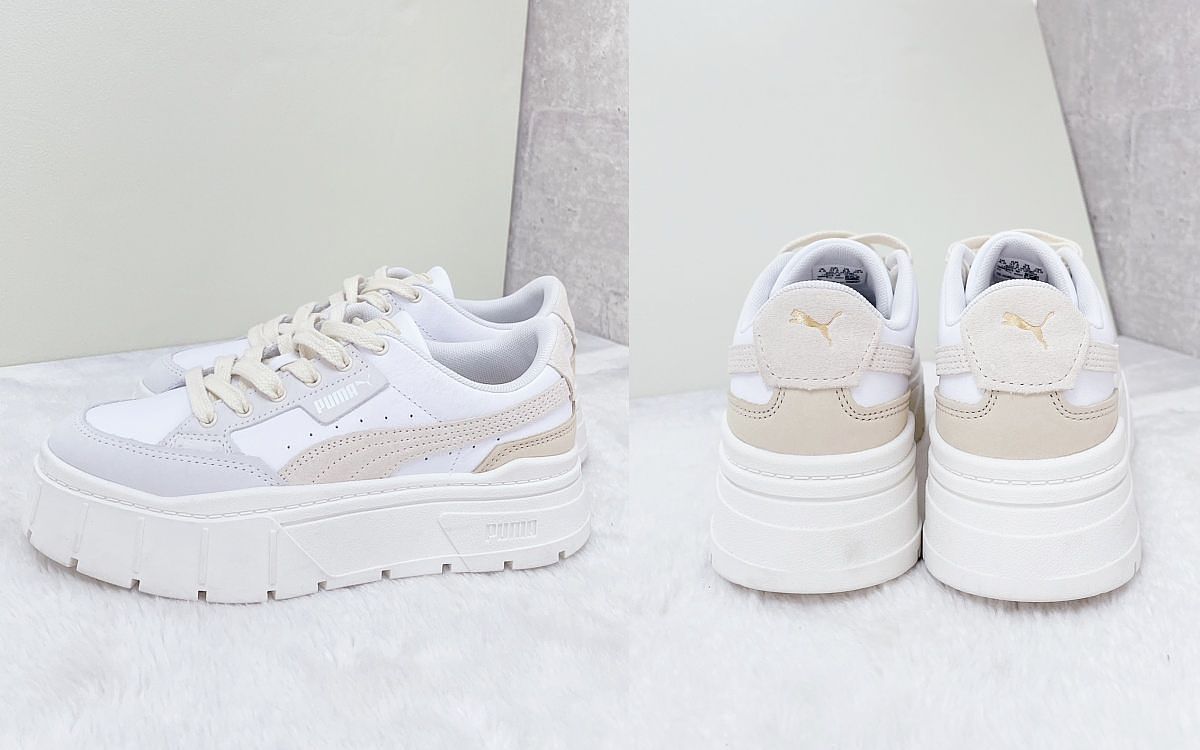 PUMA全新FANBASE系列重磅初登怎能不入手!最受歡迎的妹子鞋狂潮再襲,妳擁有了嗎?漸層奶霜色簡直就是長腿定番款!融合了復古與現代鞋款特色,純白皮革鞋面拼接淺灰及米色麂皮,線條鮮明層層堆疊,鋸齒大底更是Y2K女孩的定番穿搭範本,絕對是成功打造女孩完美比例的秘密武器!