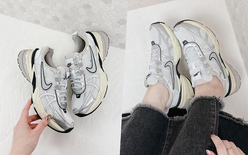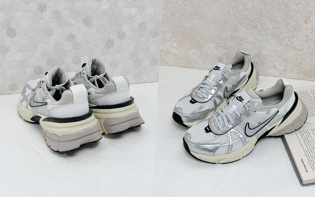 NIKE這雙Y2K千禧風格的人氣熱門鞋款V2K,為復刻風格注入未來感,白灰銀的配色既潮流有型又充滿前衛時尚氣息,打造炫光金屬層次質感,重現塑膠細節和復古美學的中底,另外增厚鞋底與輕量設計確保了舒適度隨行,難怪一捕獲就會搶購一空!