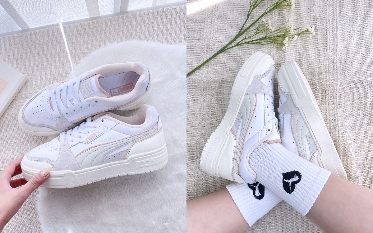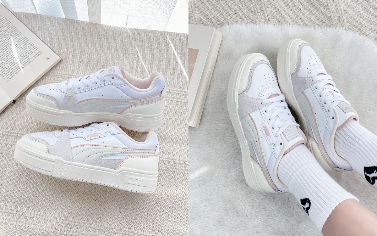 在近幾年的時尚潮流變遷下,復古網球逐漸成為街頭時尚先驅,乘著此時流行風潮PUMA特別打造全新CA PRO復古厚底小白鞋,設計發想自80年代PUMA California鞋款,採用經典復刻元素以皮革鞋面打造精緻質感,以拼色設計搭配呈現,在鞋側加入燙金PUMA LOGO更增添其層次視覺。