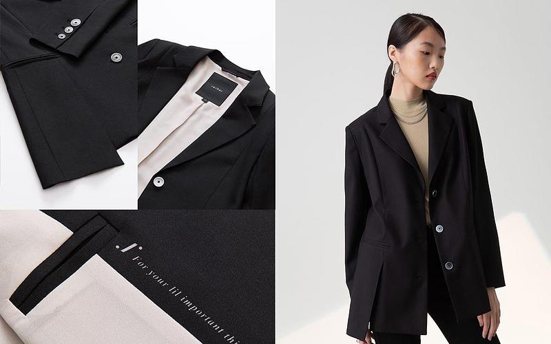 「For Her」系列不只在剪裁、面料及選色上著墨,同時也深刻知悉女人生活中的重要小事,因此蘊含許多實用小巧思,像是增添氣勢的薄墊肩,或是貼心的暗袋設計,可隨身收納口紅及香水,品牌更印製了「For your lil important things」標語,象徵生活中的每件小事都值得期待。西褲版型能包容不同臀型與身型,同時在剪裁上注入解構式手法,穿起來舒適而不失挺度。此外,該系列也包含搭配性十足的跟靴,有白、黑、棕色可選擇,正裝控千萬不能錯過!