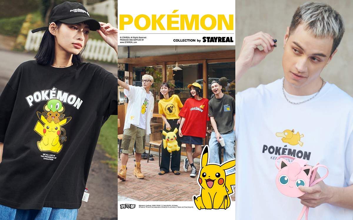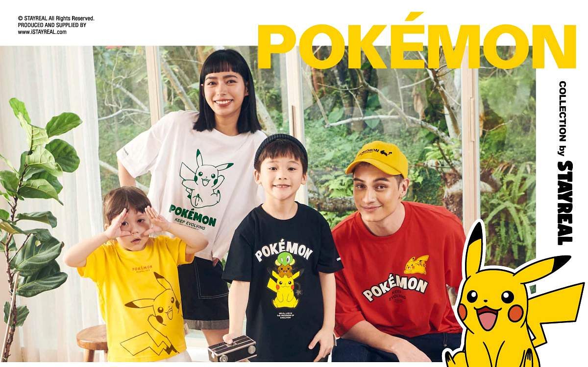 風靡全球的寶可夢熱潮持續加溫,無論大人小孩都被這股自由探索的冒險精神收服!擅長創造話題聯名的潮流品牌STAYREAL攜手寶可夢,推出一系列服飾與配件商品還有多款創意親子裝,讓皮卡丘帶著其他寶可夢一起亮相登場,感受大人系的俏皮感!透過細膩亮眼的畫風與流行剪裁相互結合,將寶可夢遊戲中的冒險精神與生活緊密相連,激盪出充滿活力的潮流火花,帶大家體驗冒險世界裡自由自在的力量!