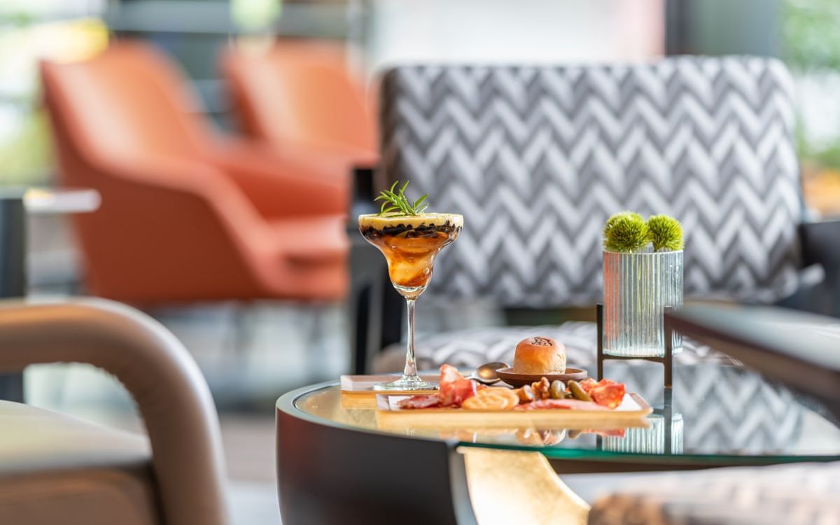 台北時代寓所一樓大廳設計摩登、挑高舒適,大片落地窗外是群樹圍繞,陽光透過樹葉灑落一片,座位區前的牆面則是互動藝術品-「蝴蝶森林」,讓人猶如處身城市綠洲中,是許多往來住客特別喜愛在此會客商務、或放空休憩的原因;為提供貴賓們更多有趣且在地的餐飲選擇,台北時代寓所特別邀請台北象山腳下愛玉專門店-《解解渴有限公司》進駐快閃,在炎炎夏日,讓文青小店手工製作的冰品和飲品成為您今年酷暑的透心涼補給!