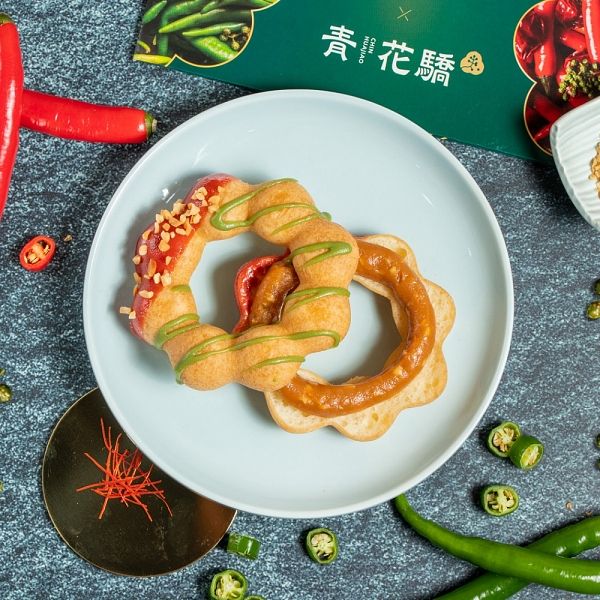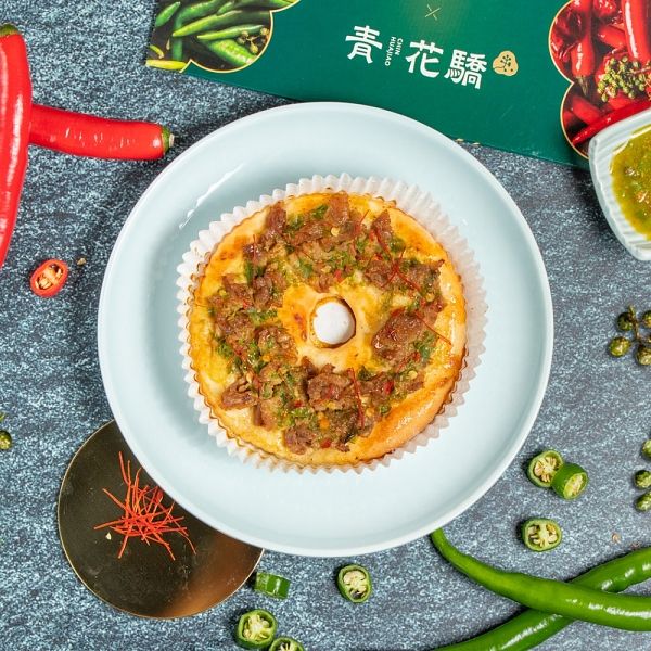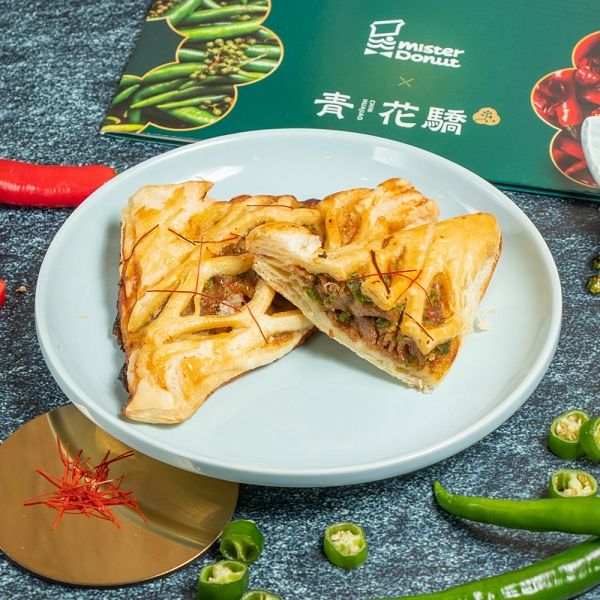 圖片來源:Mister Donut青花驕麻辣鍋以全台獨家的「青麻椒肥牛鍋」深受驕客們喜愛,更榮獲「網友票選第一精品麻辣鍋」美名。此次聯名為延續青花驕麻辣鍋專賣店精神,特以「青麻椒肥牛鍋」為主題打造「青麻椒牛肉圈」與「青麻椒牛肉派」,將Mister Donut招牌「軟Q酵母麵糰」、「酥鬆派皮」分別抹上添加青龍椒、青辣椒、青花椒油的青麻醬做為基底,再鋪上滿滿牛肉,使青麻香氣與牛肉完美交織,絕對是大口吃青麻鍋的滿足感受~還有首次推出的醬燒風味,「醬燒辣雞肉圈」、「醬燒辣雞肉派」將掌握川菜重點「麻、辣、香」的醬燒辣醬分別塗抹在軟Q酵母麵糰、酥鬆派皮上,搭配煙燻風味雞肉,入口即有川味辣椒的爽辣及芝麻醬的醇厚滋味,創造出厚實的醬燒口味,最後還有芝麻粒與香菜點綴,提升入口風味層次,滿足粉絲們對川菜的想像!