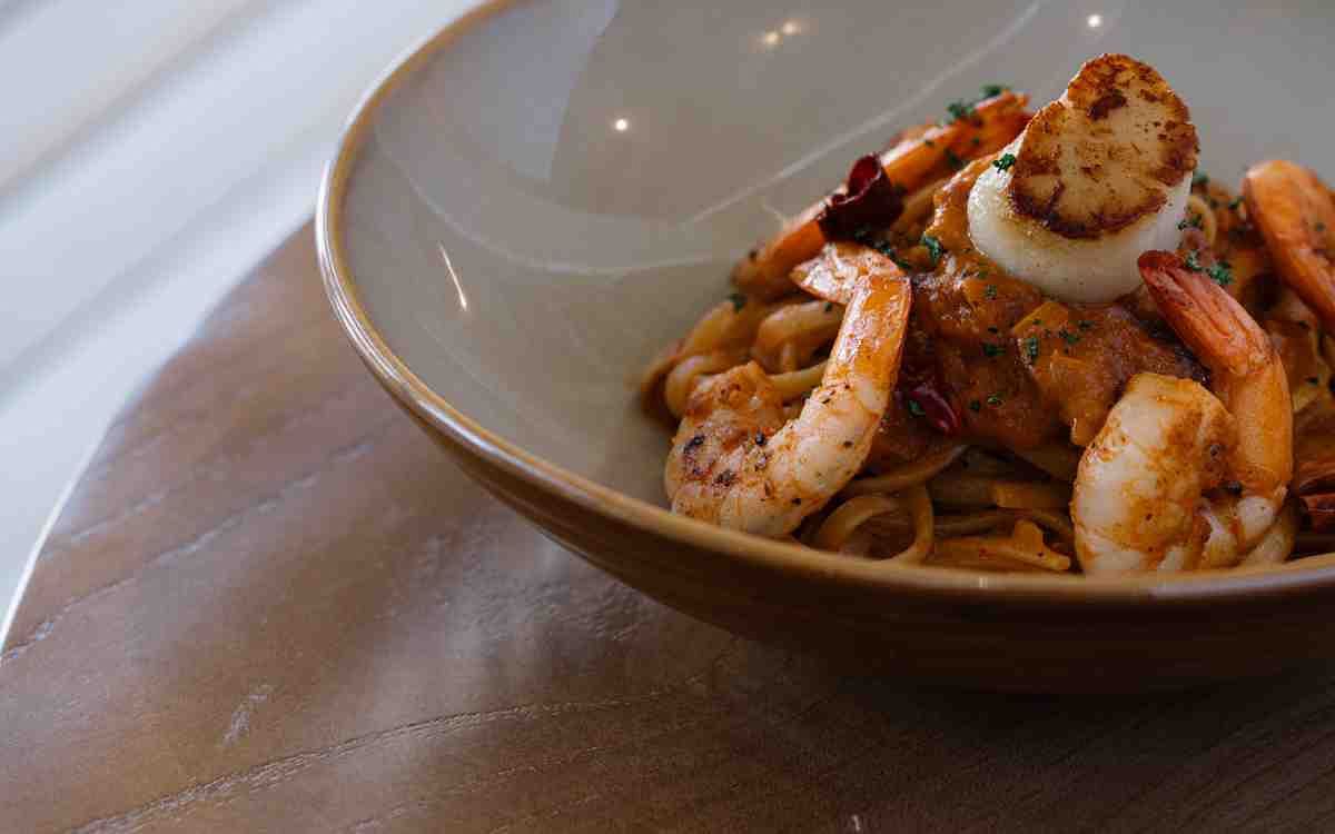 主廚使用新鮮蝦頭與蕃茄熬燉而成的高湯,堅持於 Sweet & Sour Life 自家廚房製作,不使用半成品。新鮮熬製而成的基底作為此道義大利麵的基底,使用鮮蝦與生食級干貝為主角,特別推薦給喜愛彈嫩口感與鮮香風味的顧客。