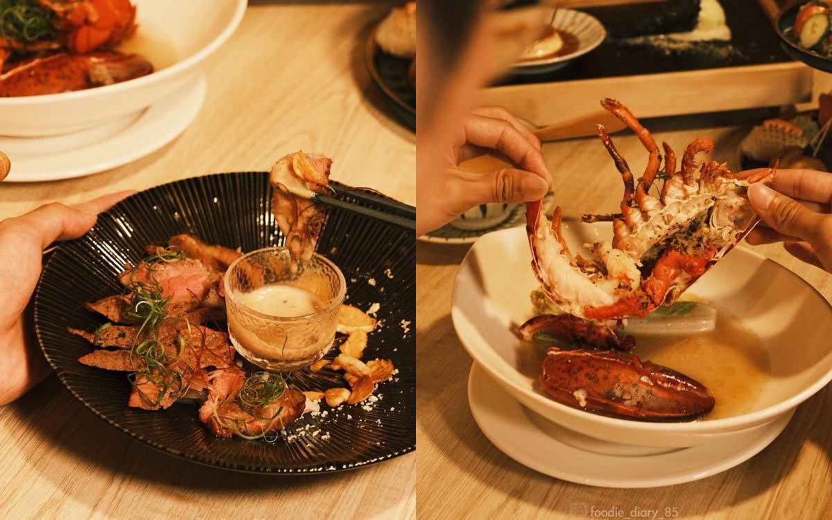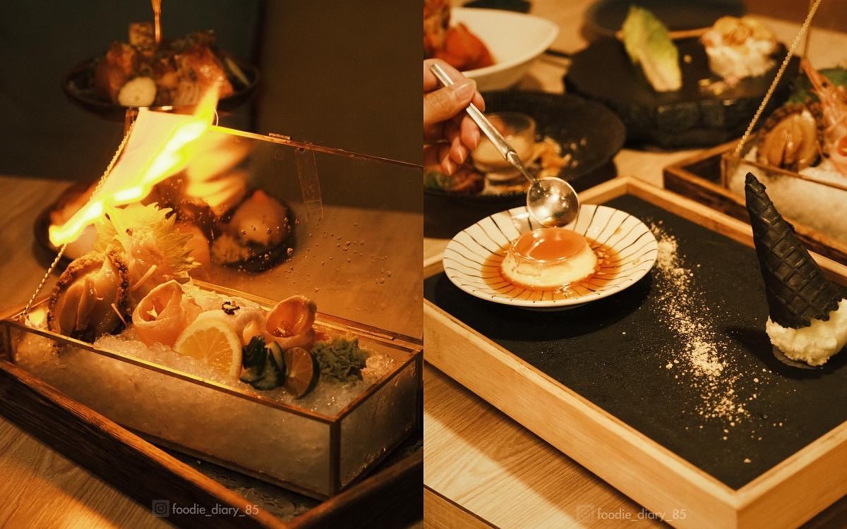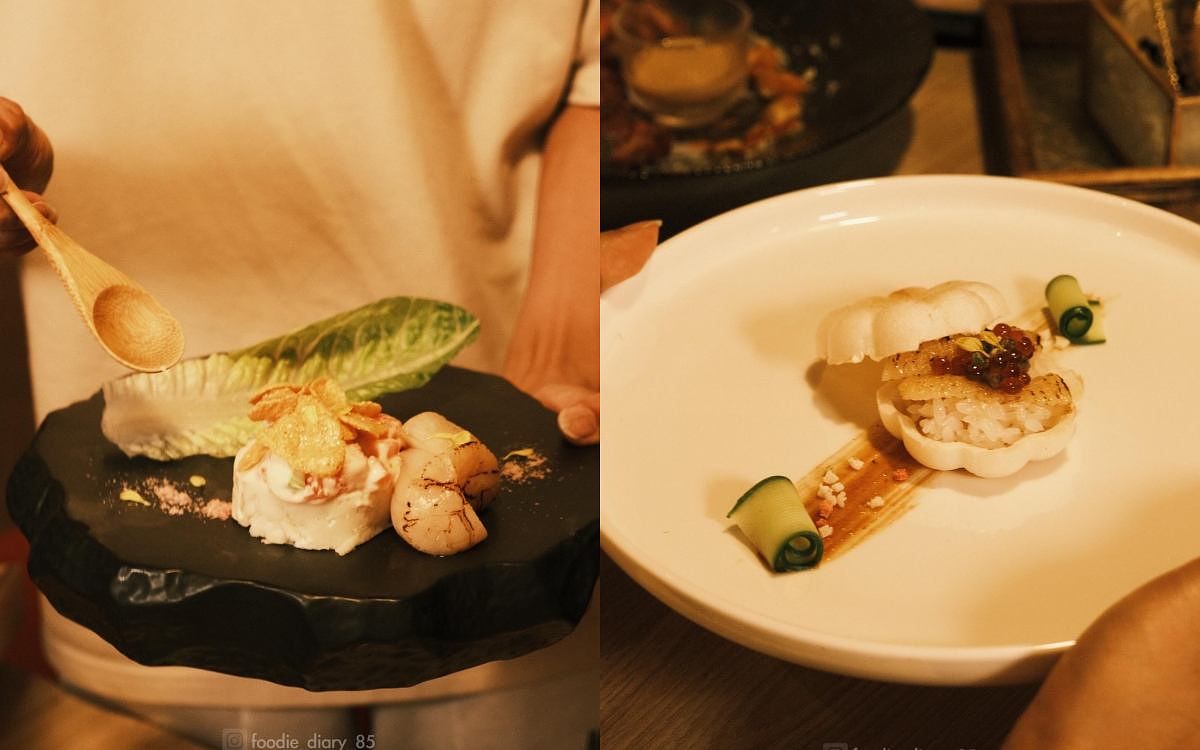 圖片來源:魚吞壽司 Sakana KA套餐(定價$1,680元)的烹調更加不同凡響,「盛合刺身」藏著店家細膩的巧思,請客人使用仙女棒與魔術用紙,揭開生魚片珠寶盒的頭簾,映入眼簾的即是各種高級食材相襯的海鮮料理,主廚蘇思源表示,這道刺身料理能增加與客人的互動,讓顧客們感受來自魚吞的溫情。若是偏好最高等級的日式料理饗宴,NA套餐(定價$2,380元)則是食客的不二選擇,自前菜起,便能感受奢華的品味。以鹹奶油蟹肉可頌為整個套餐譜出第一樂章,松葉蟹肉搭配鹹奶油,與龍蝦沙拉、法式可頌味覺相輔相成。