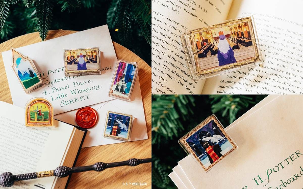 「哈利波特電影經典場景夾」的圖案設計為插畫家限定版,在詩意的繪畫筆觸下,呈現了哈利波特電影中最令人難以忘懷的場景,描繪出魔法世界中觸動人心的回憶時刻與經典人物,包含哈利波特、妙麗、鄧不利多、海格等等,以場景造型夾形式呈現,陪伴粉絲們生活日常。盲盒共有5個款式,包含:
