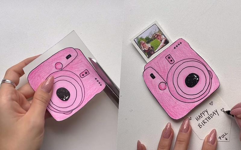在簡單的畫紙上用色筆畫上一台拍立得,再跟著影片操作立體動態的機關,一拉就有照片出現,就如同使用拍立得拍照後,照片立即洗出來的效果,非常有趣好玩又有創意,無論是好友生日、情侶紀念日都非常適合,紀念彼此共享的快樂時光!