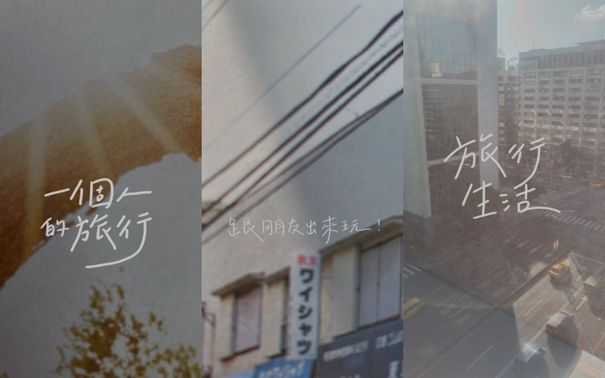 以圓潤可愛的手寫中文字,搭配上簡單的旅行字句,很適合用在放鬆身心的書是旅行中,在國外街道上走走看看、隨手一拍記錄當下,搭配文青風格的灰濛濾鏡色調,怎麼都是張張美照!